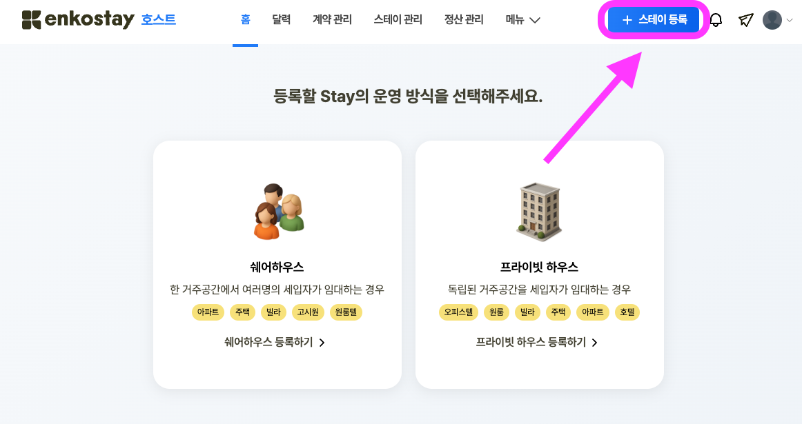 스테이는 어떻게 등록할 수 있나요? 2025년 09월 25일 09:54 업데이트 시간 호스트센터에 접속하셔서 상단 “스테이 등록” 버튼을 클릭하시면 스테이를 등록하실 수 있습니다. 등록하실 매물의 정보를 단계별로 입력해주세요. 임시 저장이 되지 않으니, 참고하셔서 등록 부탁드립니다. 관련 문서 스테이 등록시 주소 검색 및 선택이 안돼요. 호스트로 가입/등록하고 싶어요. 세입자가 RC 발급을 위한 서류가 필요하다고 합니다. 스테이 등록 후 별도의 승인 절차가 필요한가요? 세입자가 계약 요청 당시 임대료 완납한 것이 맞나요?