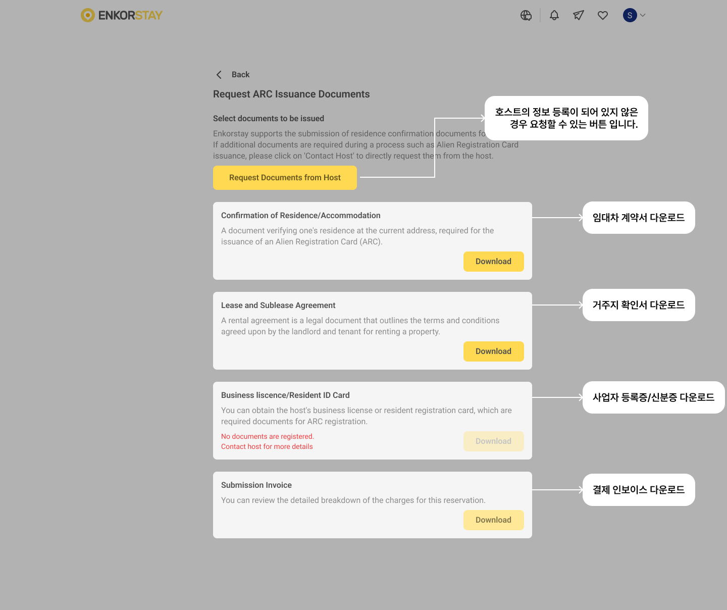 ARC 신청 과정에서 사용할 수 있도록 Enkostay에서는 다음 4가지 문서를 제공합니다.
